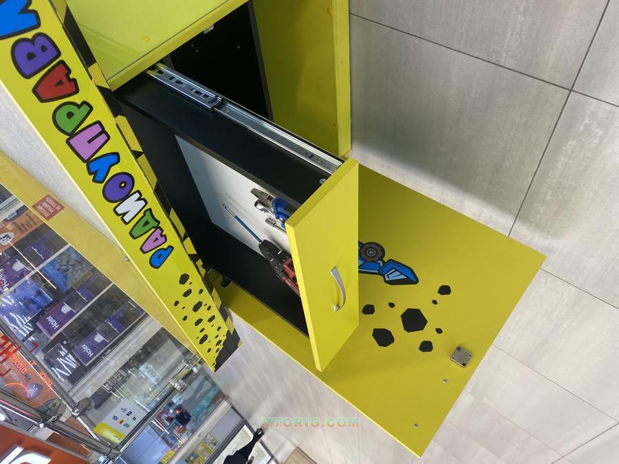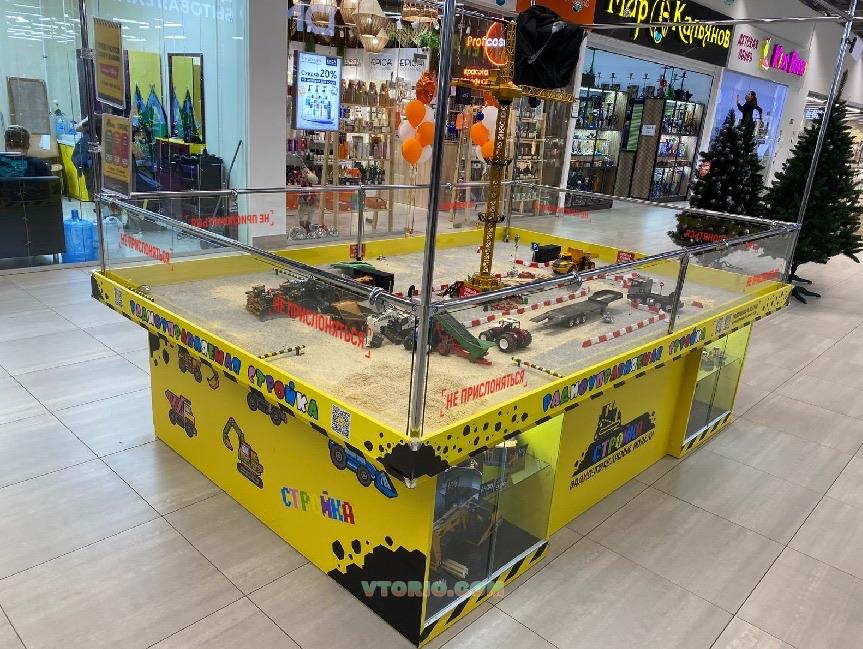 Игровой стол РУ СТРОЙКА (в комплекте с моделями 10шт) Вы зарабатываете на прокате а так же параллельной продаже игрушек! Стол оборудован всем необходимым(автомат для подключения,витрины,подсветка,хранение и тд) Разборный(площадь для транспортировки 200х100х140см) 3 компонента