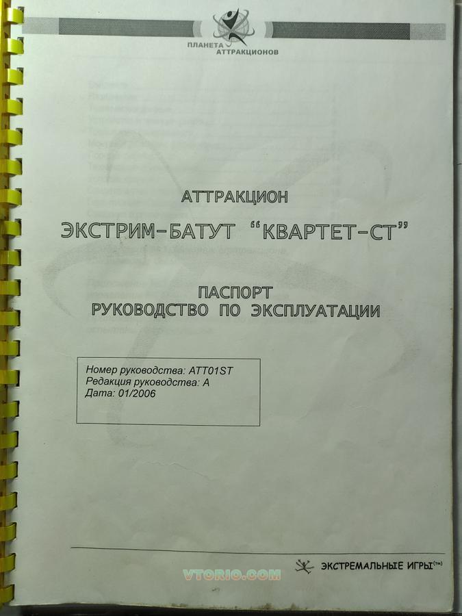 Парковый аттракцион предназначен для развлечения взрослых и детей. Аттракцион может быть установлен в парках и зонах отдыха. Состояние хорошее. В комплекте 4 лебедки , пульт управления , 3 батута. Два года не эксплуатировался, требует косметической покраски. Самовывоз. Производитель: ООО "Планета Аттракционов", РБ. Год выпуска: 2006 Цена: 250 000 руб. Состояние: б/у, хорошее Местонахождение: Рязань