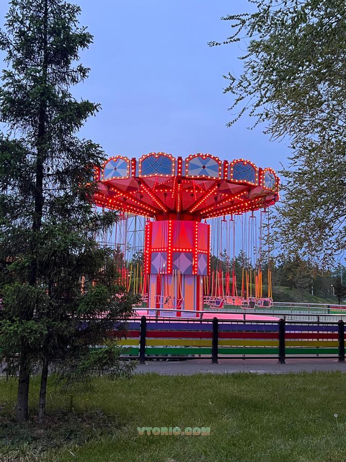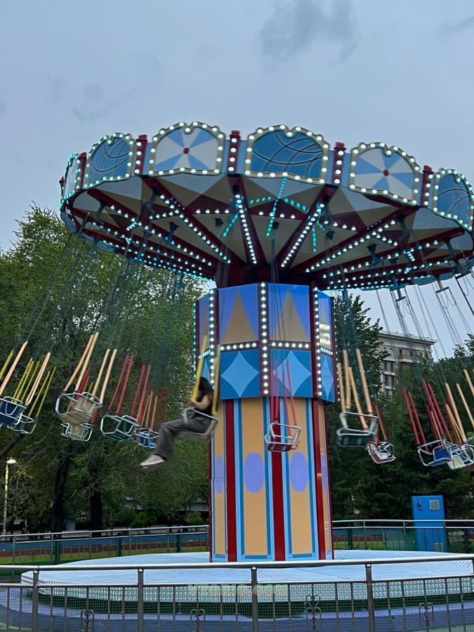 Аттракцион в отличном рабочем состоянии. 32 посадочных места, Высота аттракциона 6,9 метров, Диаметр 8,1 метр (В рабочем состоянии Высота 8,3 метра, Диаметр 11,5 метров). Общий вес без загрузки 9 килограмм (с загрузкой 11,4 килограмма). Потребляемая мощность Мотора - 28 кВт, иллюминации - 6,7 кВт. Паспорт и руководство эксплуатации оригинальные в наличии.