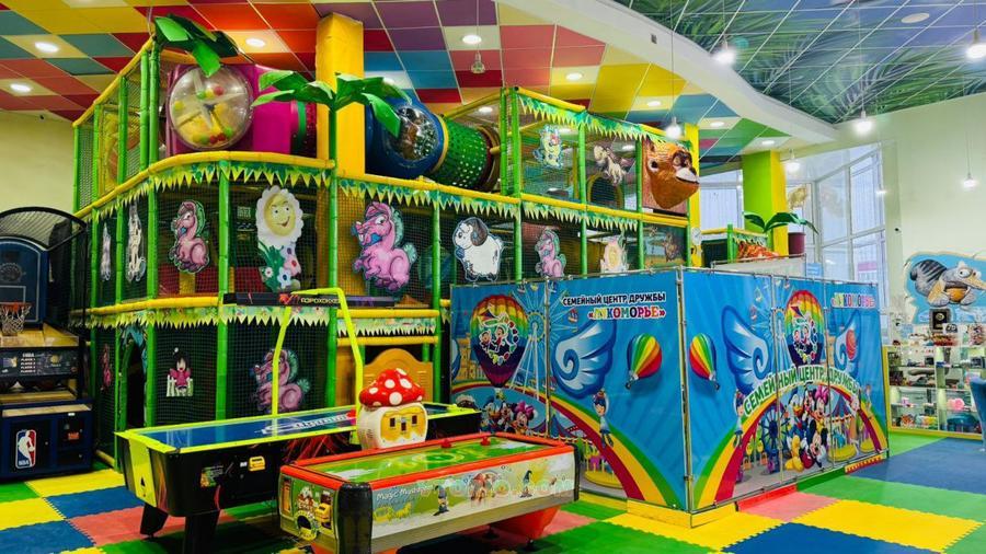 Детское игровое оборудование "Лабиринт" длинна 9,86; ширина 6,2; высота 4,4; вес 4600; рассчитан на одновременное прибывание 28 детей. В комплектации: сухой бассейн с шариками(плюс в подарок запасные шарики 1000 шт); подвесные элементы (груши, мостики, тоннели, тарзанки); препятствия (валики, вертушки, пирамиды, жгуты, панели с отверстиями); пластиковые элементы (куб, сфера, ракета, космокабина); игровые элементы (пазлы, игра х/0, логическая игра); горки (большая двойная, малая одинарная, винтовая); внешние элементы украшений (животные, пальмы) Эксплуатировалась в помещении