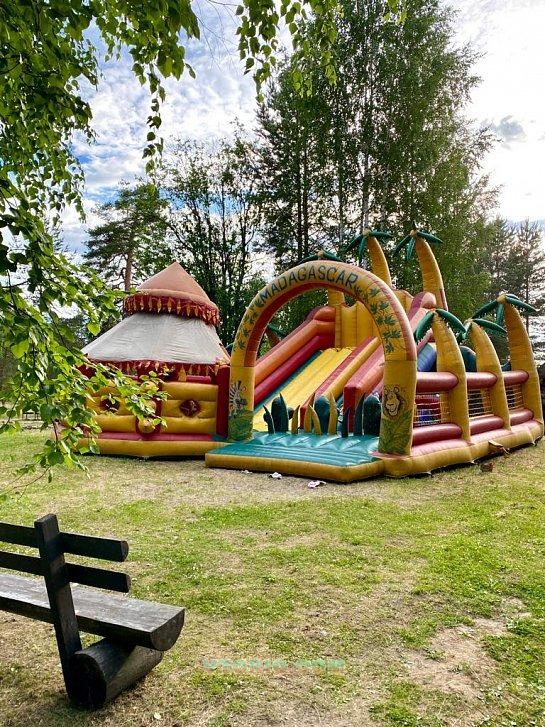 Ткань ПВХ 650 гр/м2. Два нагнетателя воздуха по 3 кВт. Требуется небольшой заплаточный ремонт.