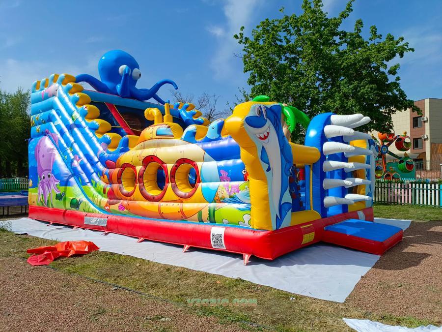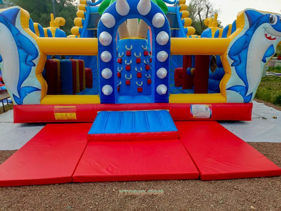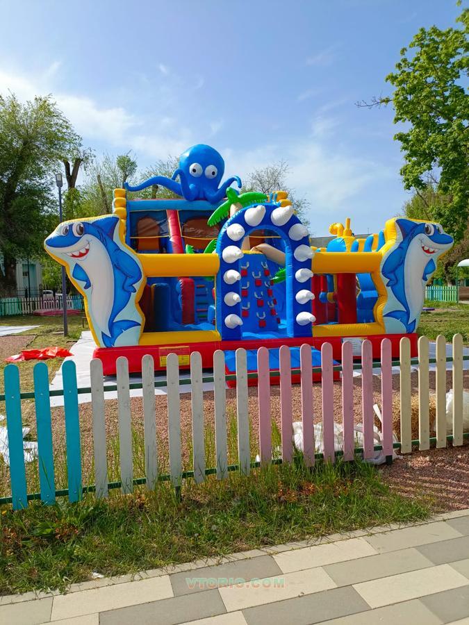 Продаётся надувной батут Осьминог. В работе 1 сезон, причина продажи - отсутствие места для установки. В идеальном состоянии, не эксплуатировался при попадании прямых солнечных лучшей, цвет сохранён. Перед сборкой на зиму обработан тальком, полностью вымыт, можно надувать и использовать. Входные маты шили на заказ по индивидуальным размерам для данного батута. (подарим покупателю) Дуйки в комплекте. Д*Ш*В - 10м*6м*3м. высота горки от земли - 2,5 м. Дата производства март 2024 г. Изготовитель - Zhengzhou Tonle Inflatables Co., Ltd Поставщик "Геймс Групп" Качество отличное!