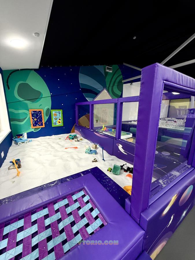 Уникальная песочница с наполнителем песок типа LLDPE (пластик), противоударное покрытие в комплекте