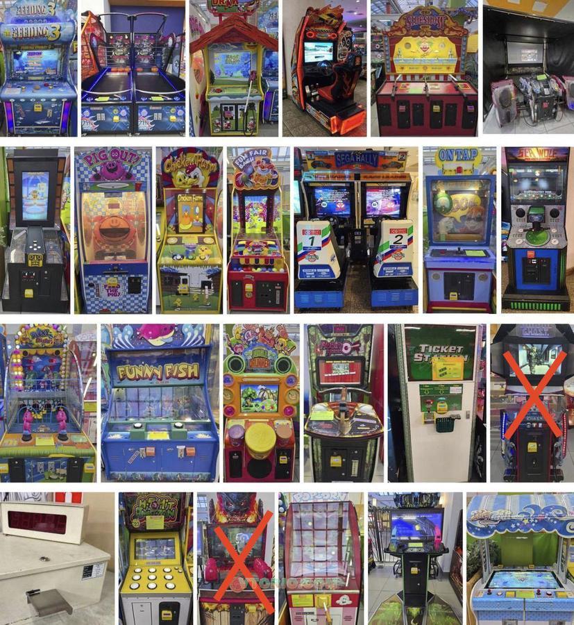 Slam a winner 60т Сиа вульф 90т Jungle Drammer 100т Pig Out 100т Hit Hit Amazon 100т Попкорн Popcorn 100т Сега ралли 2шт. 100т Chicken Farm 110т Crazy Fisher 110т Funny Fish 110т Sideshow 110т On tap 110т Fast Draw 120т Ducky splash 120т Feeding franzy 130т Robin Hood 150т Temple Run 150т Superspeed 150т Terminator 150т Shooting hoops 150т Fun fair bash 150т Aliens 180т Тикет станция 2шт 250т
