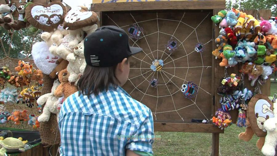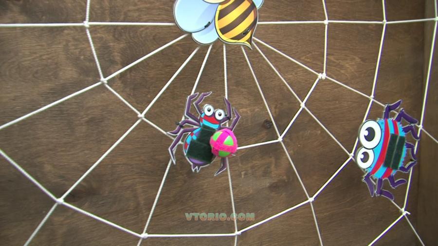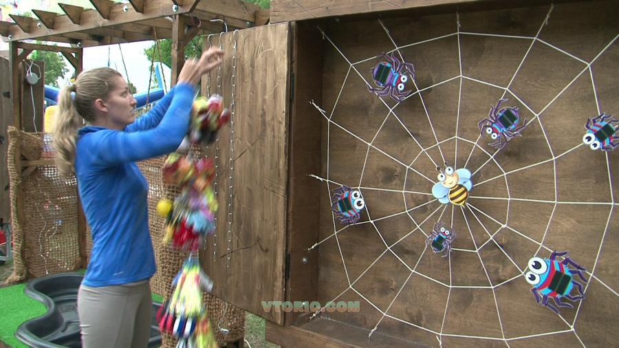 В середине путины находиться Муха-Цокотуха, вокруг нее злобные пауки. Задача игрока попасть в пауков мячиком или подушечкой, на пауках и мячиках прикреплена липучка. При попадании мячиком в брюшко паучка мячик цепляется за липучку и попадание засчитано. Дальше все просто: шесть бросков - шесть результативных попаданий и приз в руках счастливого победителя! Попали 5-4 раза из шести попыток, то средний приз, ну и все остальные результаты попадают под категорию утешительного приза. За время тестирования больших призов было разыграно мало, очень-очень мало. Ну так никто и не обещает игроку что все будет так просто!