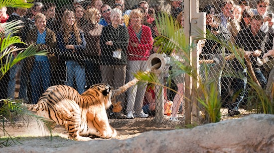Посетителям парка предоставлена уникальная возможность принять участие в игре с одним из самых опасных в мире животных. Все желающие берут конец веревки и тянут за него, сопротивляясь тигру весом 200 кг, тянущему с другой стороны ограды.