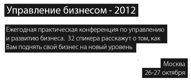 Ежегодная конференция «Управление бизнесом 2012» состоится 26-27 октября 2012 в Москве.