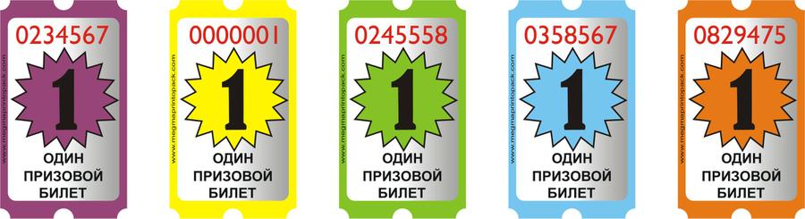 Стандартный размер 1-го призового билета: длина - 50 мм, ширина - 29 мм.
