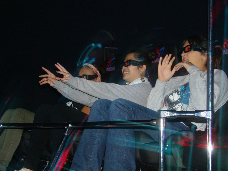 Дизайн кинотеатра был разработан специально для нашего американского партнера. Реалистичные динозавры, прорывающиеся с экрана кинотеатра в зрительный зал, – очень удачная демонстрация возможностей 5D: эффекта полного присутствия зрителей в сюжете фильма.