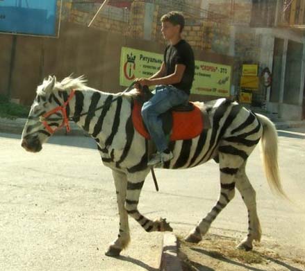 Лошадь, перекрашенная юной хозяйкой для привлечения клиентов в зебру, так же попала в число «заключенных». Тюнинг лошадки хозяйка проводила с помощью краски для волос. По словам лошадников, краска обычно смывается в течение 2-3 дней. Процедура для животного не опасна.Источник