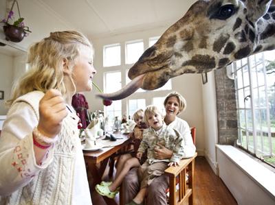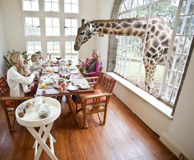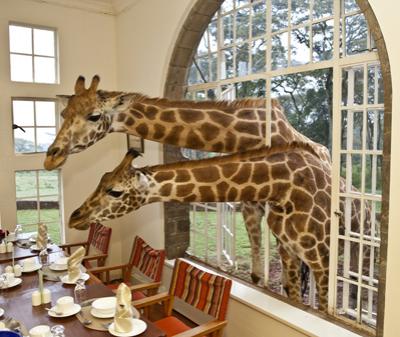 Занимательный аттракцион с участием живых жирафов предлагает роскошный пятизвездочный отель в Кении.