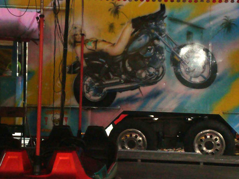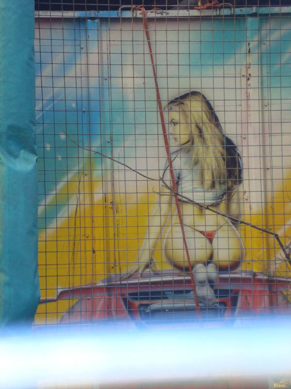 В одном из одесских парков на автотрейлере, служащем для перевозки детских аттракционов, обнаружены своеобразные «веселые картинки».