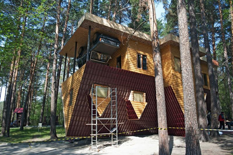 Дом наклонен в двух плоскостях так, чтобы привести посетителей в замешательство. Аттракцион, по словам бизнесмена, привлекает людей главным образом возможностью сделать эффектную фотографию, «стоя» на потолке или на стене. «Мы хотим сделать наполняемость дома максимальной, чтобы работали телевизоры, горел камин, все было, как будто бы здесь только что сидели люди, пили чай», — рассказал агентству соавтор проекта Игорь Кончик.