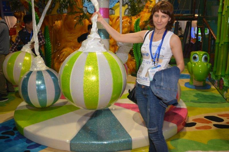 Вот такие силиконовые фигуры являлись украшением почти всех стендов поставщиков игровых площадок. Цену затруднялись назвать все поголовно,словно это был заговор или маркетинговый ход по определению цены в зависимости от интереса. Сделаны эти дизайнерские штуковины очень неплохо. Пробные карусели вместо привычных "животных с движением по кругу" выглядели чем-то свеженьким.