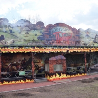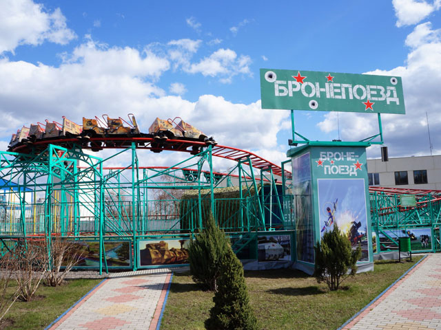 Территория парка оформлена плакатами времен Великой Отечественной войны, обслуживающий персонал одет в военную форму. Парк будет работать в течение всего летнего сезона.