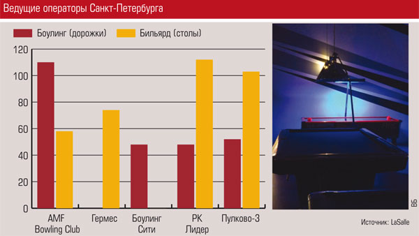 Дорожки для боулинга и бильярдные столы распространены в Петербурге в большей степени, чем в Москве и Европе (43% против 10 и 12% соответственно). Только 16% московских и 25% петербургских торговых центров предлагают классические зоны развлечений с игровыми автоматами и аттракционами.