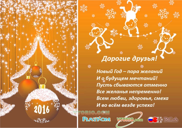 Дорогие друзья! Дорогие коллеги! От всей души мы поздравляем вас с наступающим Новым 2016 годом! Сейчас мы вместе переживаем нелёгкий период нестабильности, время кризиса. Но "тот ,кто сдался,тот погиб",потому мы желаем Вам быть бойцами, не терять оптимизма и уверенности в себе и своих силах. Наш развлекательный бизнес-это подарок людям, это море позитива и отдых от реальности. Желаем вам развития , креатива , пусть вокруг вас будет много улыбок и положительной энергии! Здоровья вам и вашим семьям, взаимной любви и финансового благополучия!!!