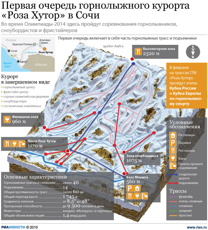 "Строительство идет очень интенсивно, учитывая, что Россия взяла на себя обязательство уже в 2012 году предоставить готовые объекты. Объекты Горного кластера Красной поляны в полном объеме предстоящей зимой будут принимать соревнования, а значит должны быть в полной готовности", — отметил Нагорных.