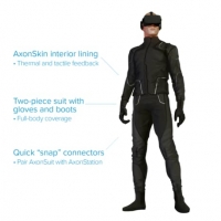 Ядро системы составляет легкий костюм AxonSuit, состоящий из куртки, брюк, перчаток и сапог, которые передают тактильные ощущения и даже тепловую обратную связь с различными частями вашего тела. Внутри костюм выстлан материалом, содержащим тысячи «точек», которые могут индивидуально применять различные количества давления и тепла, чтобы имитировать различные текстуры и температуры.