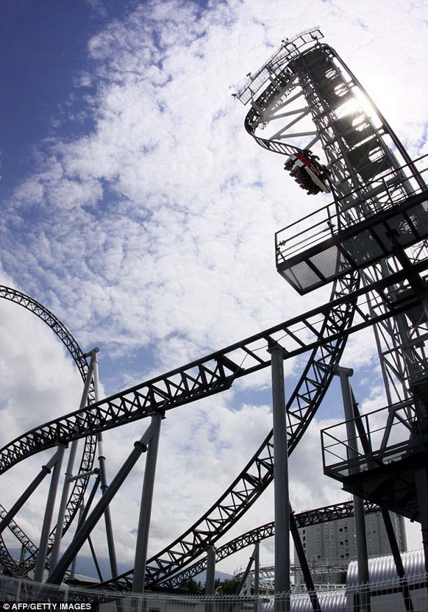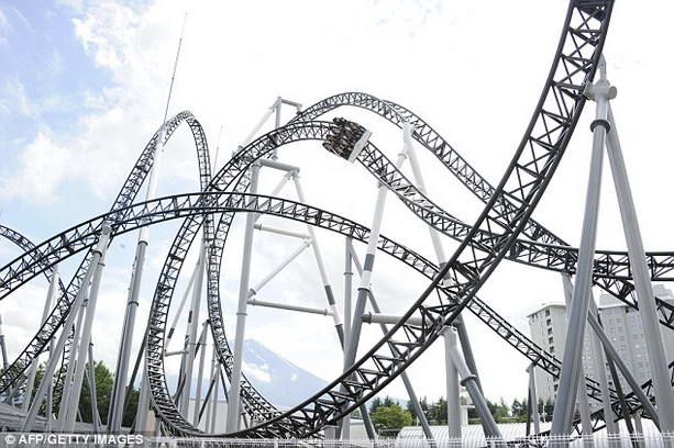 Тематический парк развлечений как раз построен в тени горы Фудзи в Японии и является очень популярным особенно среди японской молодежи, которой не хватает адреналина в крови, а новые горки вызвали массу улыбок, смеха и криков страха.