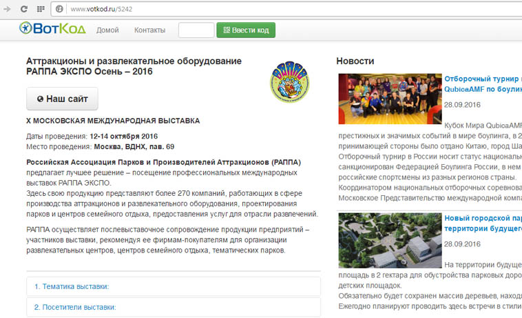 Код выставки РАППА ЭКСПО ОСЕНЬ-2016: 5242 http://www.votkod.ru/5242