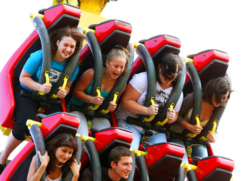 Через пару часов я уже работаю как заправский оператор. Даю советы: к примеру, не забывайте дышать во время полета (некоторые делают вдох на старте, а выдыхают только на финише). Тем, кто хочет самых сильных ощущений, рекомендую садиться на последние ряды, поскольку они выше всех поднимаются по змейке и потом проходят самый длинный путь в мертвой петле.