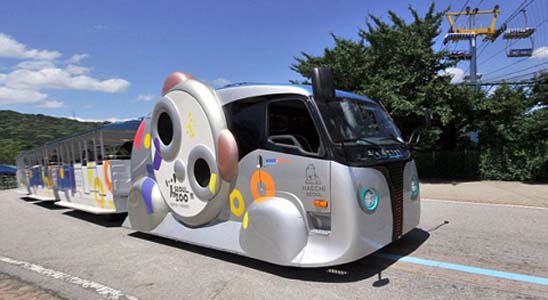 Зоопарк и развлекательный центр Сеула (Seoul Grand Park) получил электрические «паровозики», подзаряжающиеся прямо во время движения без контактных рельсов или висящих в воздухе проводов. Появление необычного транспорта стало результатом сотрудничества Seoul Grand Park с Корейским институтом науки и технологий (KAIST), построившим на территории парка дорогу для транспортных средств с бесконтактным электропитанием по системе Online Electric Vehicle (OLEV).