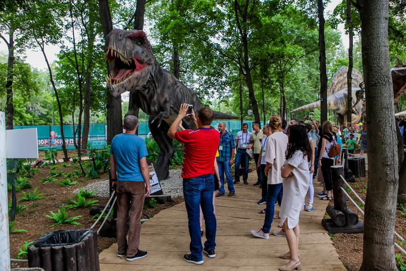 В ПКиО им. М.Гафури участники увидели сразу три досуговых объекта: парк аттракционов «Волшебный мир», парк динозавров «Юркин Парк» и колесо обозрения «Седьмое небо», на котором все с удовольствием совершили обзорную поездку. Выбор организаторами именно этих развлекательных комплексов был продиктован целью познакомить участников с центрами разного формата и разного уровня развития.