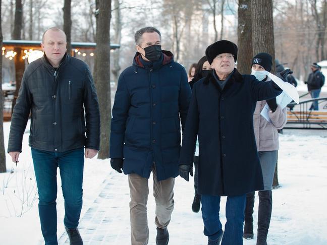 «На прошлой неделе мы проводили опрос, где в первую очередь приложить наши усилия по повышению комфорта общественных пространств, – напомнил Вячеслав Гладков, говоря о цели своего визита. – Два объекта вышло в финал, это Архиерейская роща и парк Ленина, в итоге победил последний. Мы договорились с Юрием Владимировичем пройти по парку, посмотреть концепцию того проекта реконструкции, который существует».
