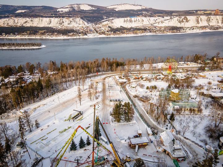 В красноярском парке флоры и фауны «Роев ручей» начали устанавливать новое колесо обозрения.