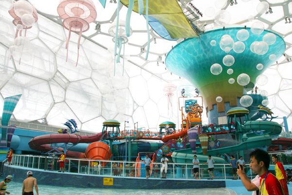 Ведь, как оказалось после Олимпийских Игр, центр водных видов спорта такого размера Пекину не нужен! Зато вполне нужен аквапарк – место, где люди могли бы круглогодично плескаться в воде, не завися от капризов природы.