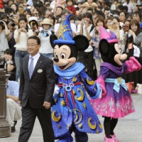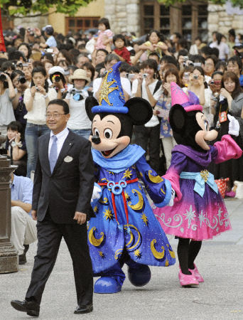 Японский Диснелэнд отметил 10-летие своего открытия. Разумеется, с Микки Маусом и другими персонажами Диснея, которые вместе с персоналом в красочной форме приветствовали посетителей.