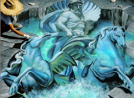 Картину Трейси Ли Стам рисует специальными красками и мелками. Этот шедевр, по словам художницы, продержится неделю. Картина будет закончена завтра. Трейси за свои рисунки завоевала много наград в Америке и в Европе. Кроме того в 2006 году она была представлена в книге рекордов Гиннеса как автор самого большого в мире 3D-рисунка.Источник