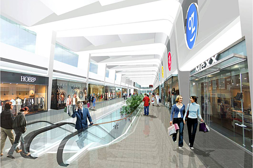 Экстерьер торгового центра разработан известным лондонским архитектурным бюро Dyer. В вечернее время фасад здания фантазийно подсвечивается и вызывает восхищение у посетителей. Не менее оригинально оформлен и интерьер. На потолки с помощью специальной техники будут проецироваться всевозможные картины и фотографии.