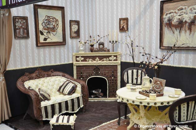 Такой подарок был сделан посетителям торгово-развлекательного центра в честь его 5-летия. В комнате все предметы — всего 54 (включая ковер, посуду, картины, вилки и ножи) сделаны из темного и белого шоколада.