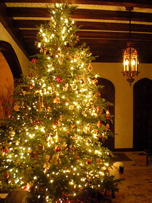 Характерным элементом праздника Рождества является обычай устанавливать в домах наряженное дерево ели. Эта языческая традиция зародилась у германских народов, в обрядовости которых ель была символом жизни и плодородия. С распространением христианства среди народов Центральной и Северной Европы украшенная разноцветными шарами ель обретает новую символику: ее стали устанавливать в домах 24 декабря, как символ райского древа с изобильными плодами.