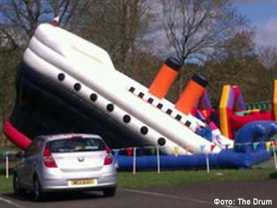 В парке Лох-Шор города Антрима в Северной Ирландии среди прочих детских аттракционов расположили надувную горку в виде полузатонувшего "Титаника". Как сообщает BBC News, это вызвало волну критики в адрес властей города, которых обвинили в дурновкусии.