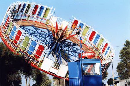 Работники развлекательного парка - немногословны. Видят журналистов - выключают ржавую карусель, а не менее старый пульт управления заматывают шарфом.